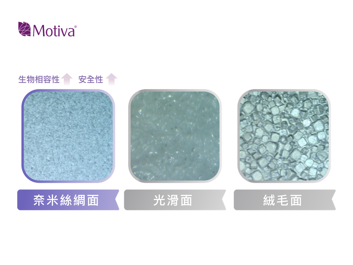 對於追求自然胸型與真實手感的人而言,植入物「如何與身體相處」往往比尺寸更重要。SilkSurface® 奈米絲綢面正是 Motiva 魔滴® 為此而生的專利表面技術,更是魔滴®少女波™ 能兼顧自然柔軟觸感與長期安全性的核心關鍵。